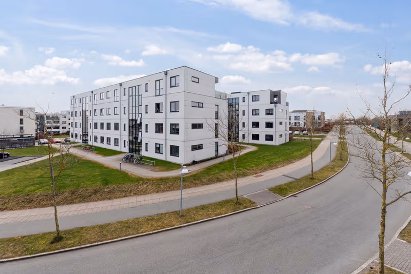 Søndergårds Allé is part of a newly developed neighborhood where supply of modern rental housing remains limited. The setting combines urban convenience with green surroundings, including access to Stormose nature reserve, Søndergård lake, communal green areas, and playgrounds. Daily life is supported by strong infrastructure with Måløv S-train station, shopping, schools, and local workplaces all within close reach.