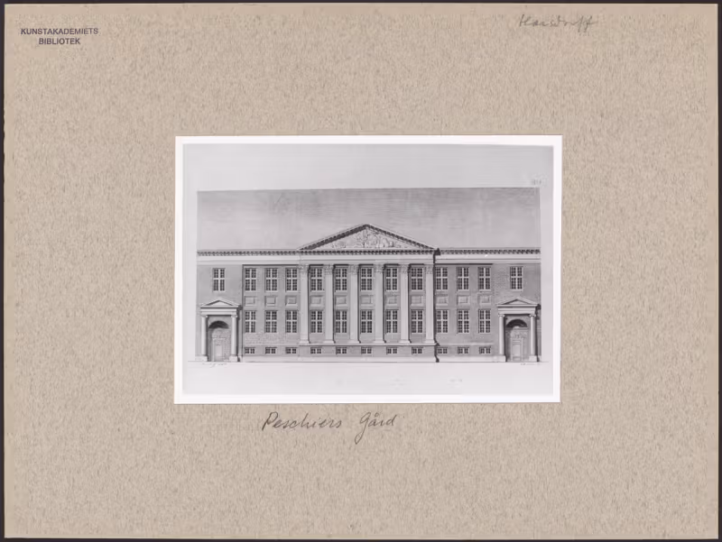 Harsdorff is known for a series of distinguished classical buildings — including our own Erichsen’s Palæ with its temple gable facing Kongens Nytorv, his own residence (Harsdorff’s Hus) on the same square, and even the temporary wooden colonnade connecting the palaces of Christian IX and Christian VII at Amalienborg, which, amusingly enough, still stands today.
