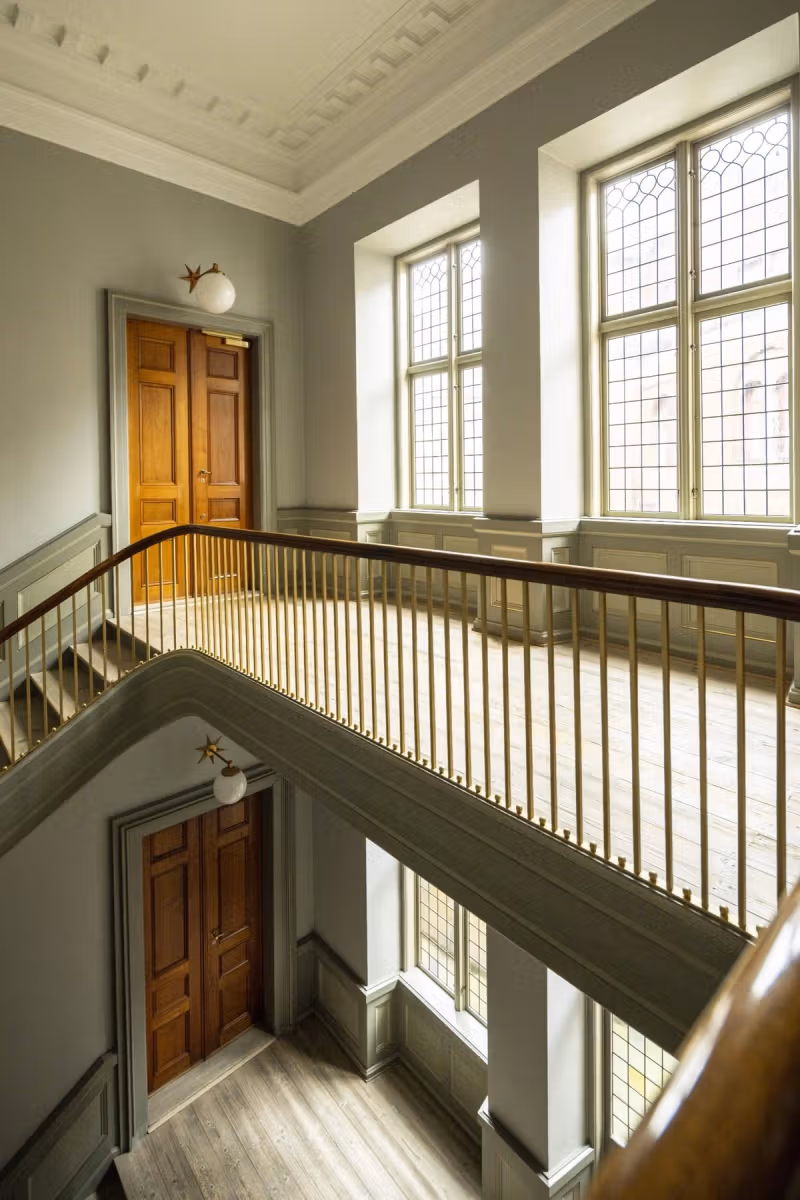 We are now carefully restoring the property together with our skilled heritage architects from Praksis and in close dialogue with the Agency for Culture and Palaces. Wherever possible, we bring forgotten architectural details back to life, restore where necessary, and add new structural elements to create a modern, functional workspace — with level-free access, open-plan offices, coffee stations, and, not least, a healthy indoor climate.